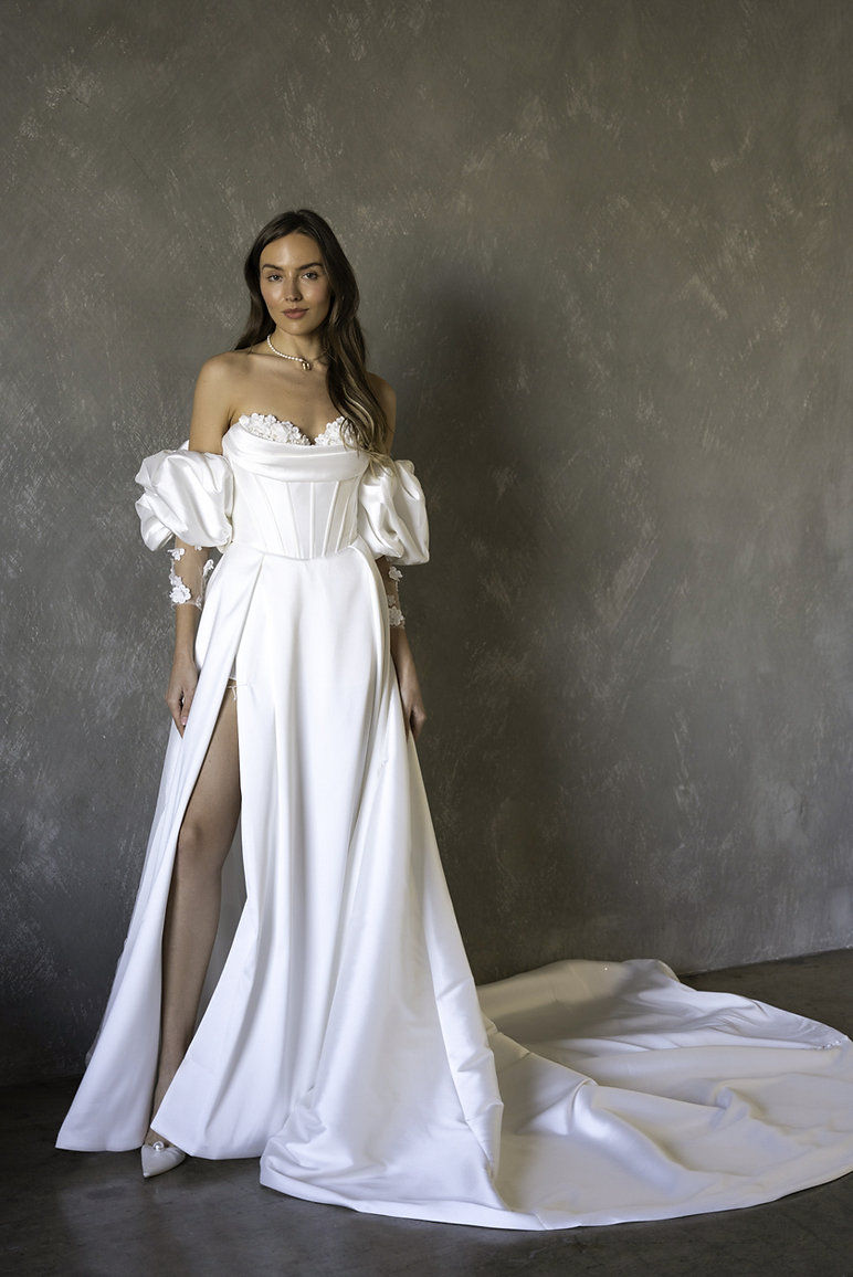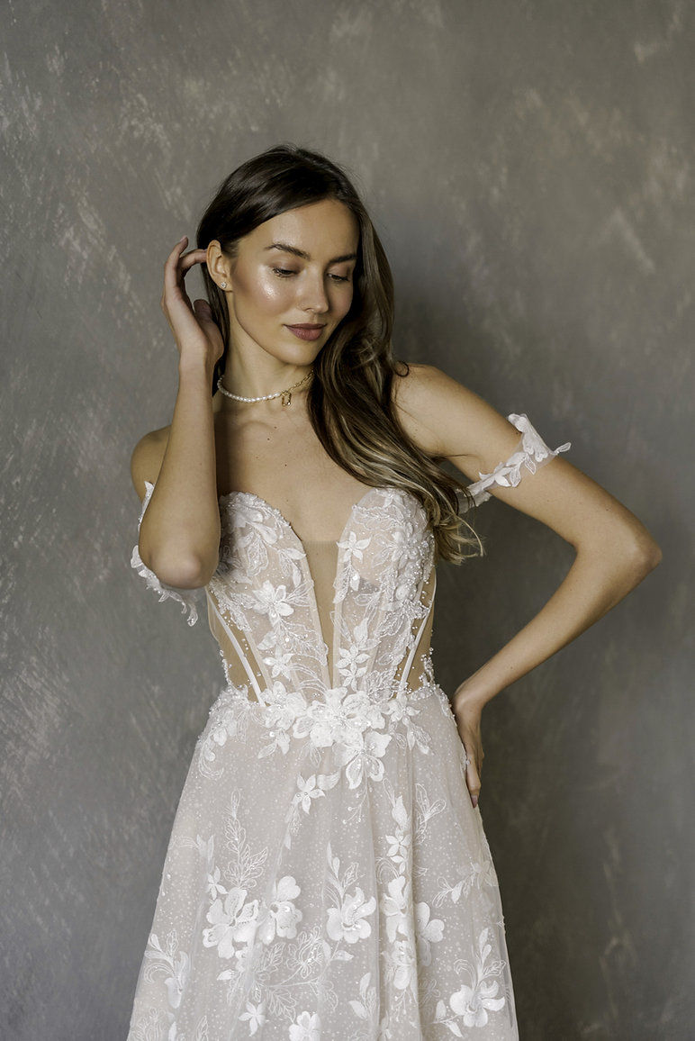 Brides often visit us after exploring other bridal stores in Las Vegas and bridal shops, and they love our warm, personal approach. Our collection includes some of the most beautiful bridal gowns in Las Vegas, with most dresses priced between $2,200–$4,000.