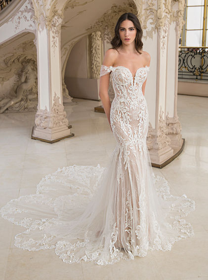 Regal and refined, the Cleopatre bridal gown from Lovest Bridal Boutique stuns with golden accents and timeless grandeur.